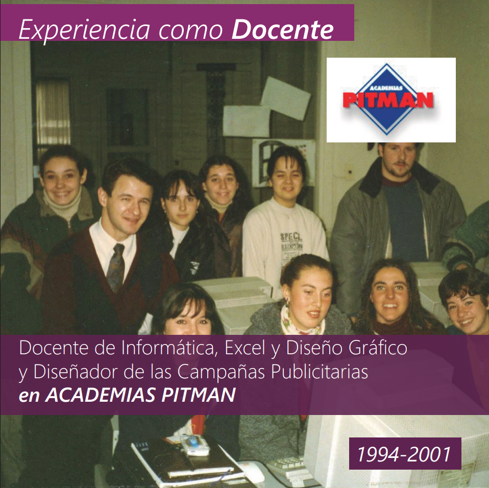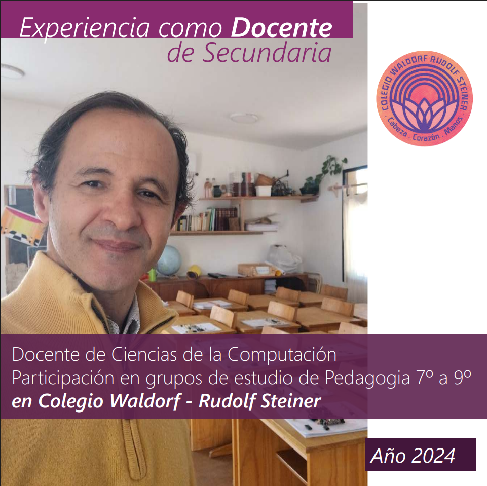 En el รกmbito acadรฉmico, cuento con una sรณlida trayectoria en la enseรฑanza secundaria hasta la formaciรณn tรฉcnica y universitaria. Mi experiencia abarca desde informรกtica, Ciencias de la Computaciรณn, Programaciรณn, Adobe Creative Suite, Figma, Office 365, Marketing Digital, Diseรฑo Web (WordPress y HTML5, Excel Avanzado, y experiencia de usuario UX/UI aplicando pedagogรญa Waldorf.